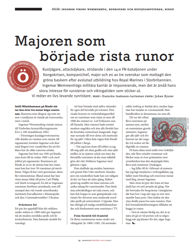 Magasin Skärgård har i sitt vinternummer ett reportage från mig om runristaren på Rindö.