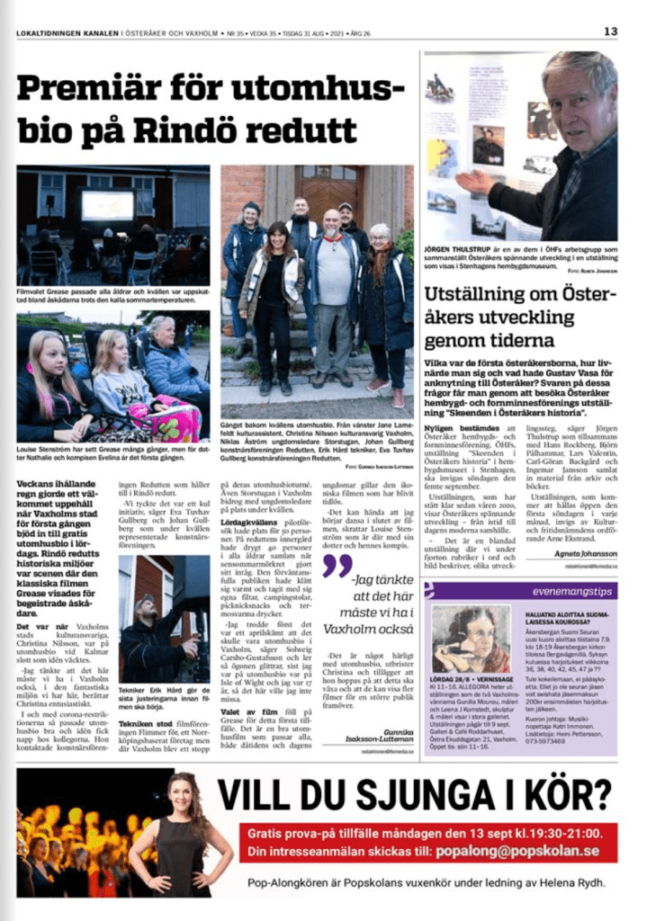 Rindö är en ö i utveckling där det händer mycket, förhoppningsvis kommer utomhusbion tillbaka nästa sommar men tills dess kan du hålla koll hos Visit Skärgården vad som händer på ön.