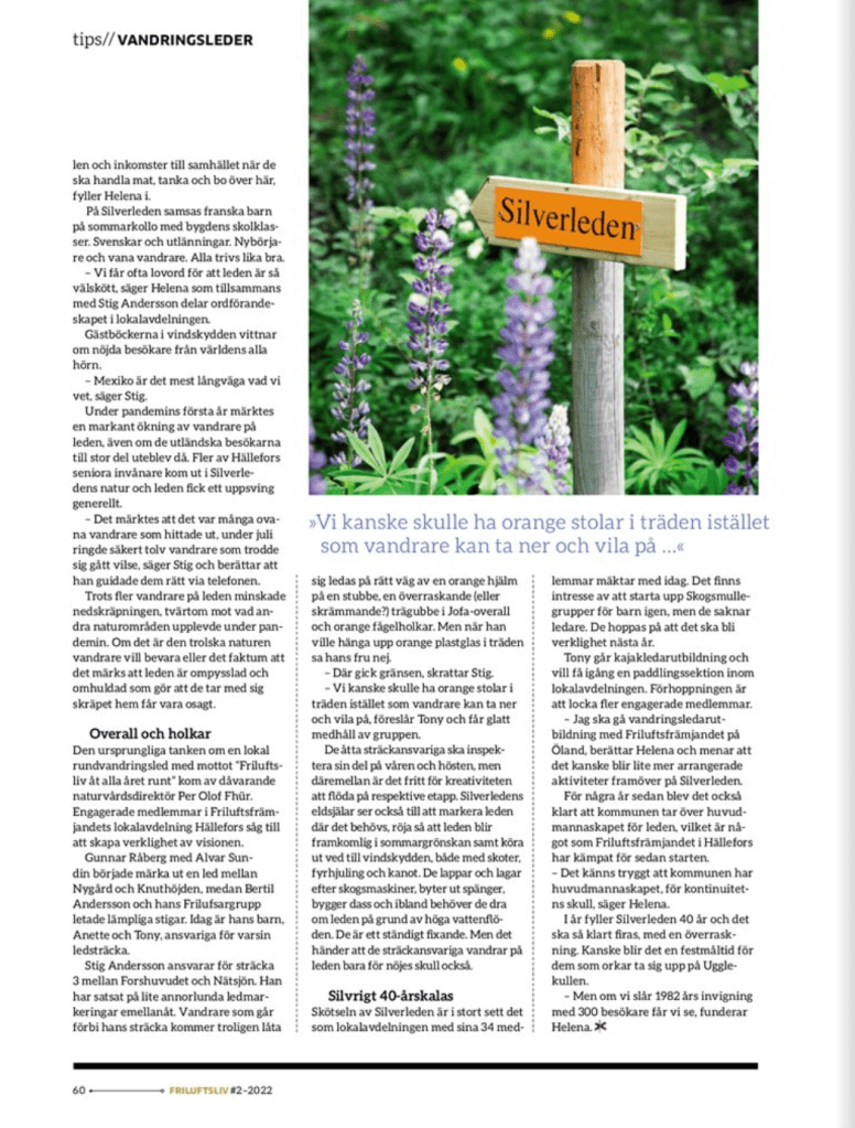 I nummer 2-2022 har jag skrivit två reportage, ett om bäversafari i Långhundraleden och ett om guldvandring på Silverleden. Det första är plåtat av Johan Marklund och det andra av Linda Romppala.
