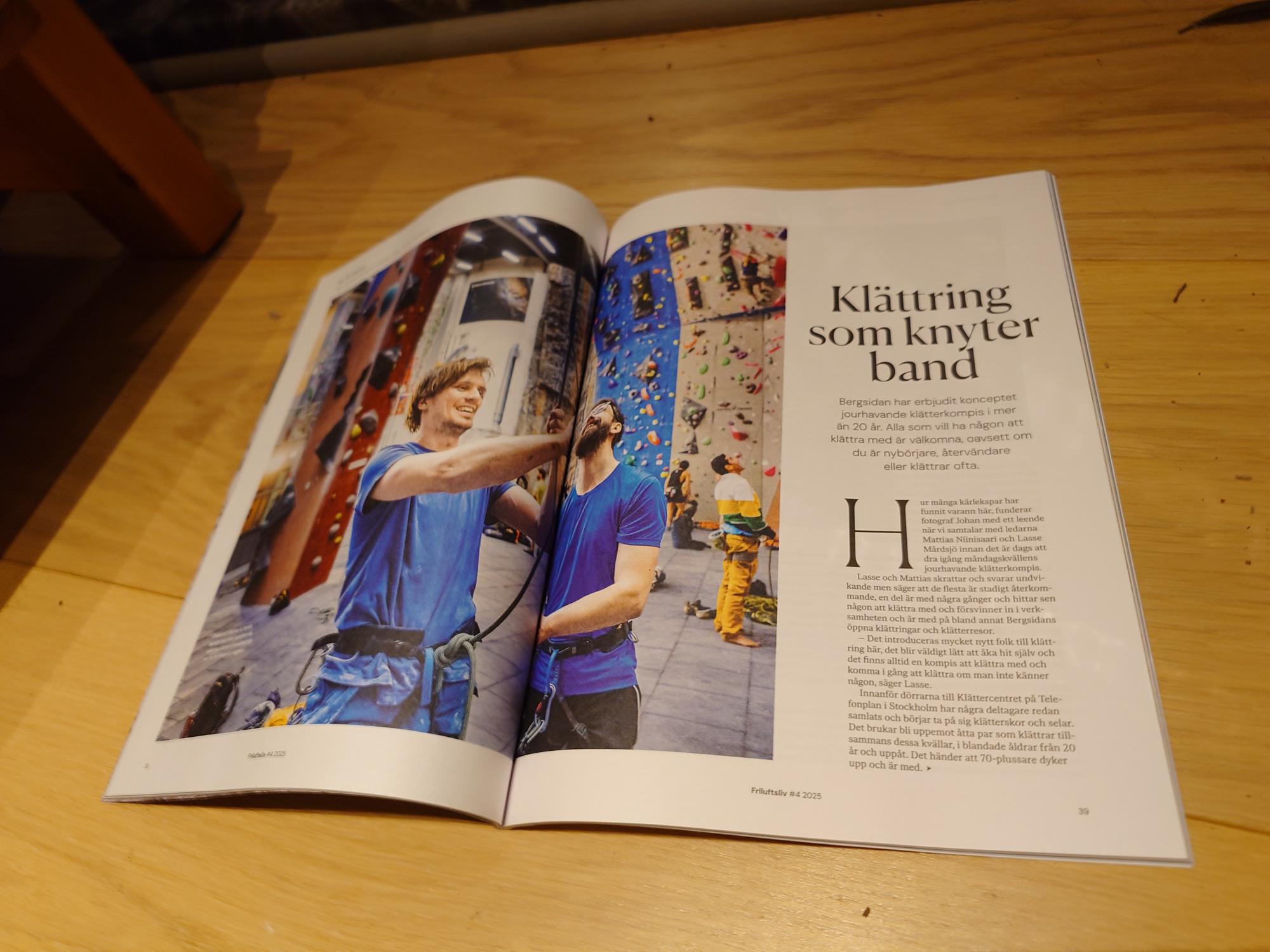 Magasin Friluftsliv nr 4 är ute nu och jag har med en artikel om jourhavande klätterkompis. Jag har skrivit texten och Johan Marklund har tagit bilderna. Kul reportage att göra och fint att höra att så många har hittat till klättringen och nya kompisar tillsammans med Bergsidan och Friluftsfrämjandet.