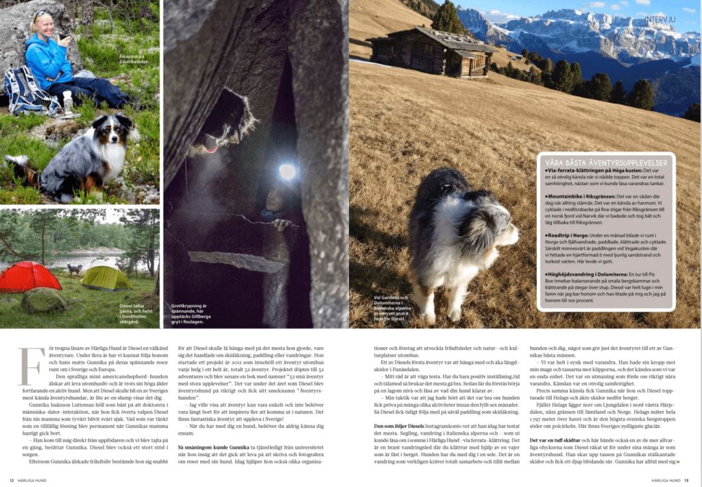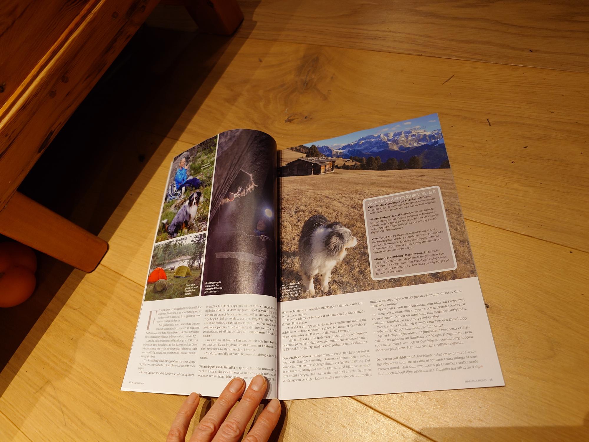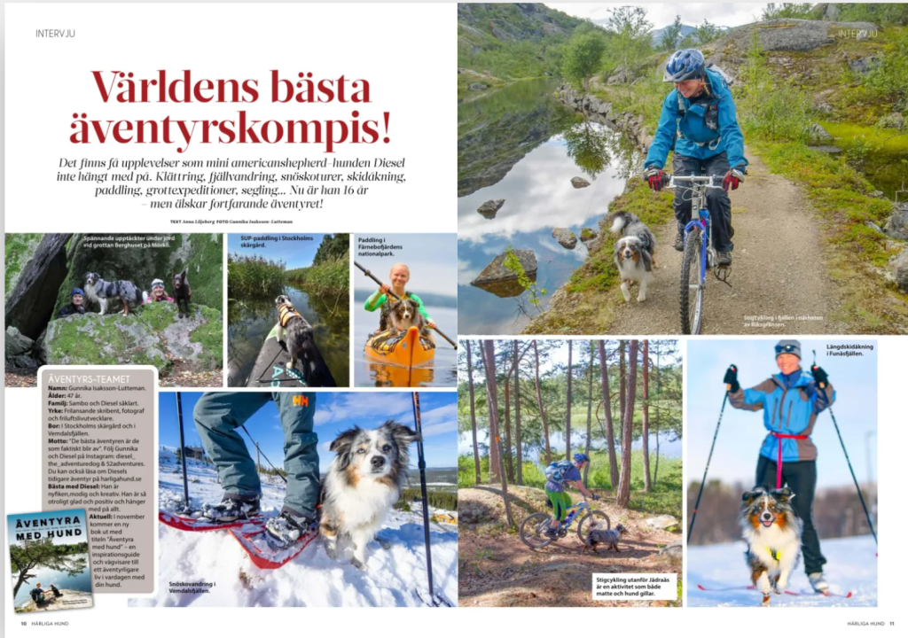 Julnumret av tidningen Härliga Hund är här nu, och Äventyrshunden Diesel har fått en stor artikel om sitt liv som just Äventyrshund och nya boken Äventyra med hund. Hoppas att Diesels upptåg kan inspirera andra hundar och människor till mer äventyr i vardagen, både från tidningen och nya boken!