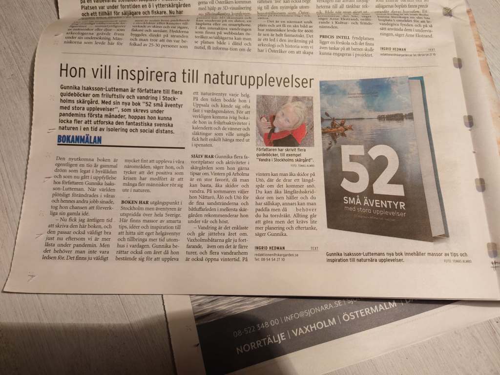 “Hon vill inspirera till naturupplevelser”, så lyder rubriken på artikeln i Tidningen Skärgården nr 1-2 som kom ut i veckan. Och precis så är det. Det är hela tanken bakom boken, att locka fler människor ut i naturen.